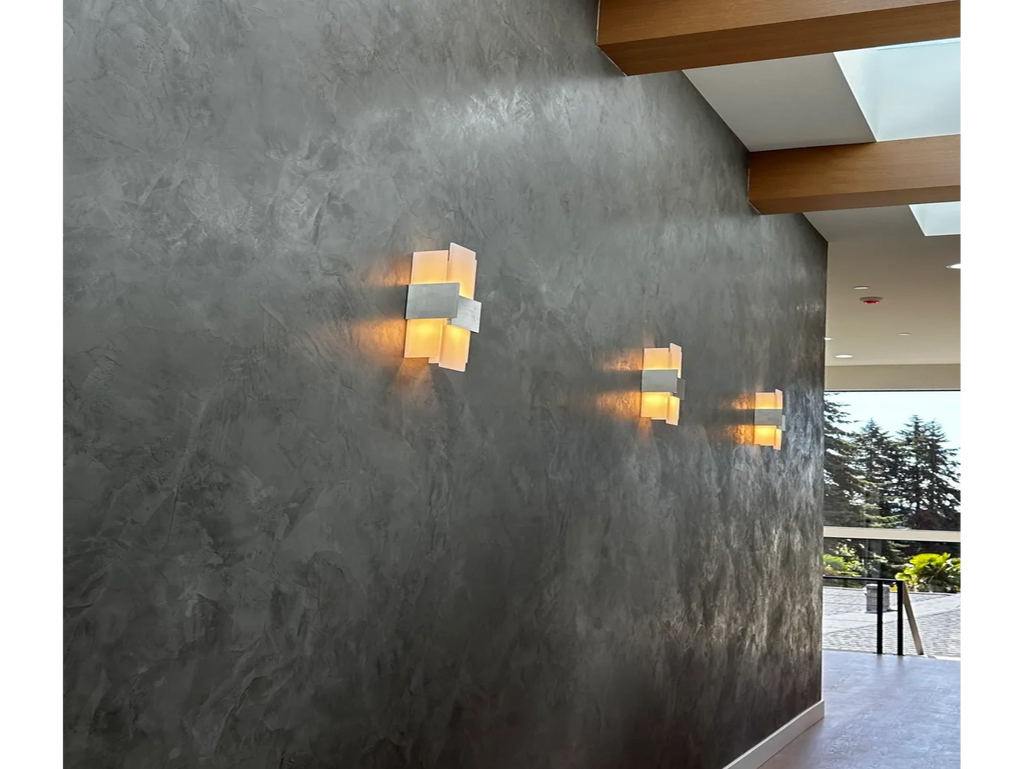 Known for its durability, creative versatility and ability to hold color, micro-cement can replicate the smooth and mottled look of Venetian plaster as well as the more monochrome and rough look of concrete. It is composed of cement, sand and an acrylic binder, ideal for high traffic, high wear areas like floors, exteriors or commercial spaces.